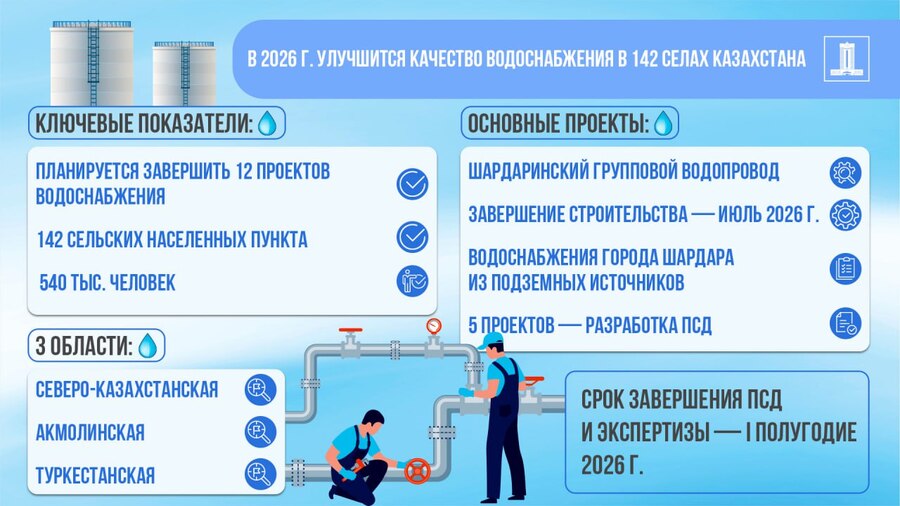 Правительство рапортует: ключевая задача, поставленная Главой государства, — обеспечить стопроцентный охват населения питьевой водой — выполнена. Сегодня под контролем государства уже 90 городов и 6 087 сел, где проживают около 7,5 миллиона человек. Те населенные пункты, которые еще недавно считались «проблемными точками», сегодня подключены к централизованным системам водоснабжения. Это стало возможно благодаря масштабной мобилизации ресурсов: выделено порядка 835 млрд тенге, реализовано более 1,6 тысячи проектов, дополнительно установлены сотни комплексных модульных систем на местах.