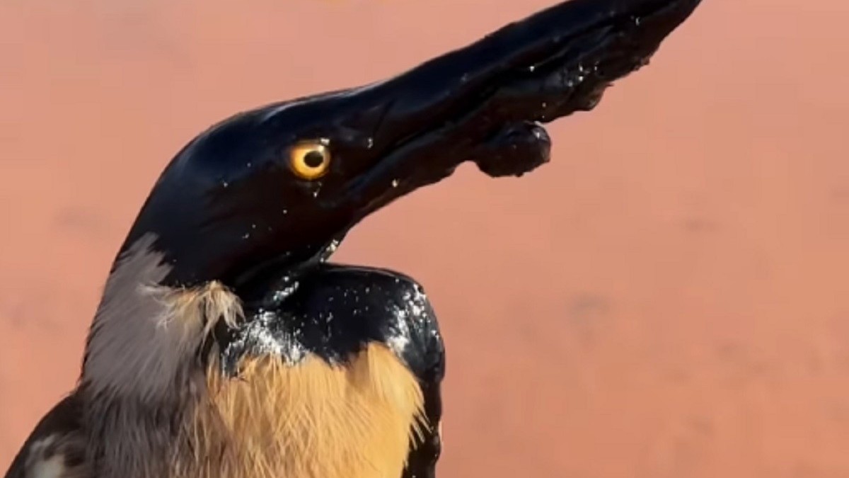 В Мангистауской области сняли на видео птицу в нефти, сообщает Malim.kz со ссылкой на Lada.kz.