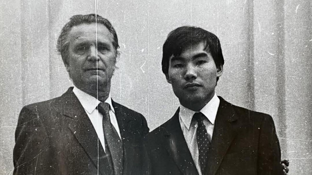 «Очень редкое фото. Батыр со своим педагогом по классу саксофона Яковом Матвеевичем Ткаченко. Только узнал, что он ушёл неделю назад в возрасте 98 лет. Светлая память!» - написал Байканов на своей странице в фейсбуке.