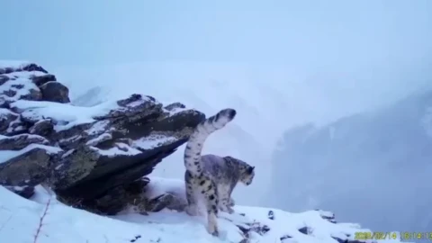 В районе Бүркітау, на территории Алтайского лесничества Катон-Карагайского национального парка фотоловушка зафиксировала редкого и занесённого в Красную книгу снежного барса.
