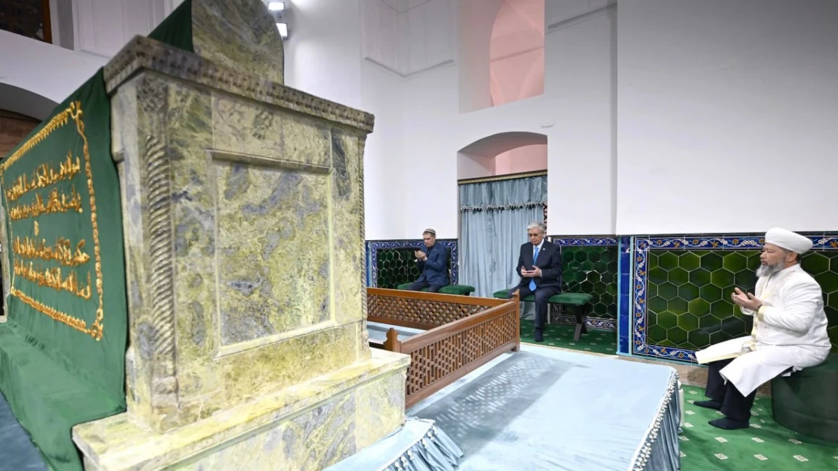 Касым-Жомарт Токаев и Гурбангулы Бердымухамедов посетили одну из величайших духовных и историко-культурных святынь тюркского мира – мавзолей Ходжи Ахмеда Яссауи, внесенный в список Всемирного наследия ЮНЕСКО.